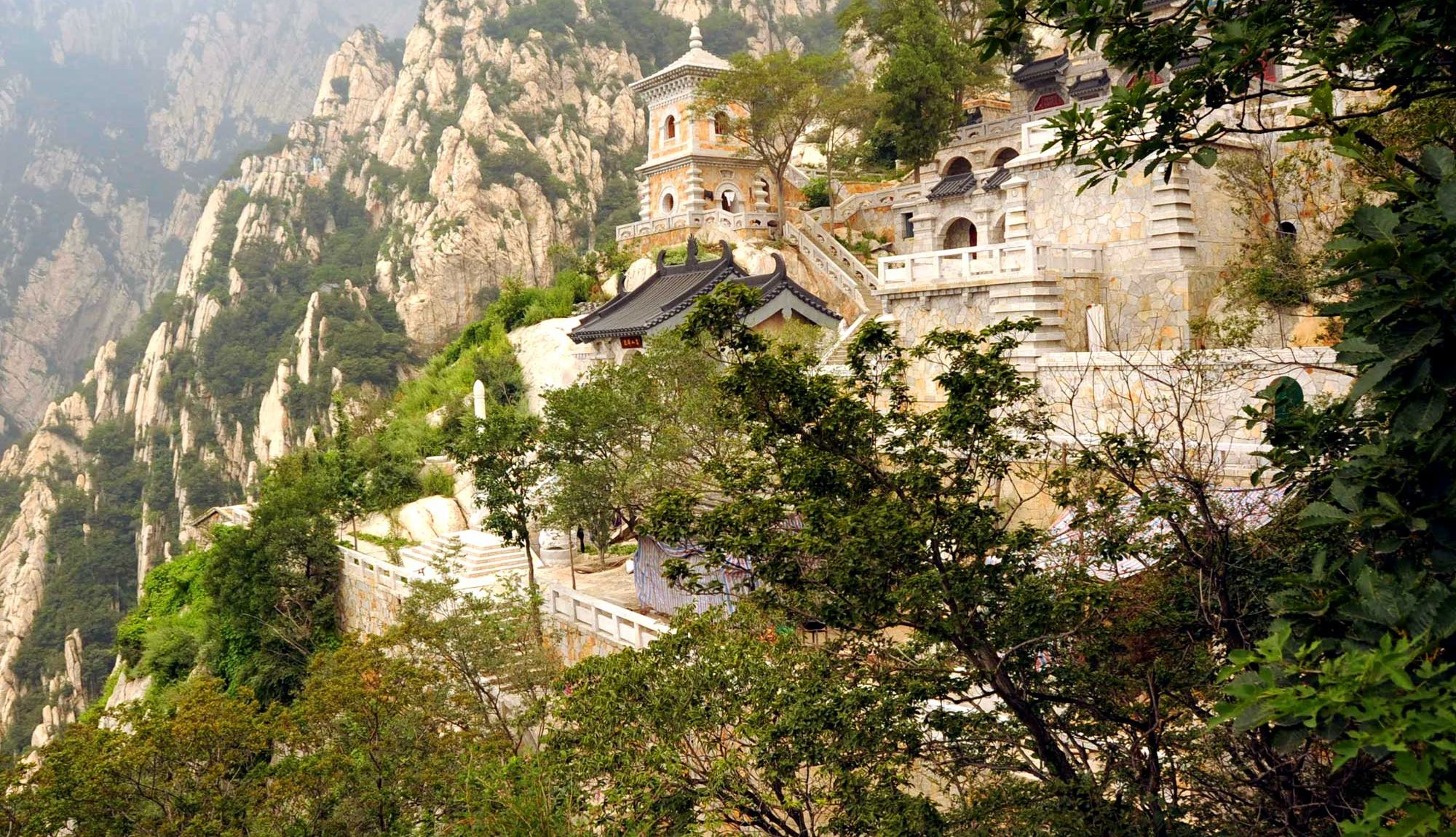 Здесь укрылся от суеты буддийский храм, где монахи также занимаются кунг-фу под руководством патриарха школы Синь-И Ба, Ши Дэцзяня. Мы считали количество ступенек. До 10000 не хватает примерно 60-ти. Подняться наверх можно и по канатной дороге :)